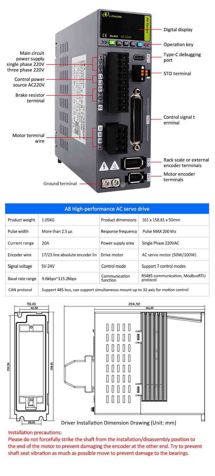 TheLichuan A8 жоғары дәлдіктегі STO ABZ айнымалы ток сервомотор драйверлерінің жинағыүш дәлдік ішкі жүйені біріктіру арқылы функцияларды орындайды: