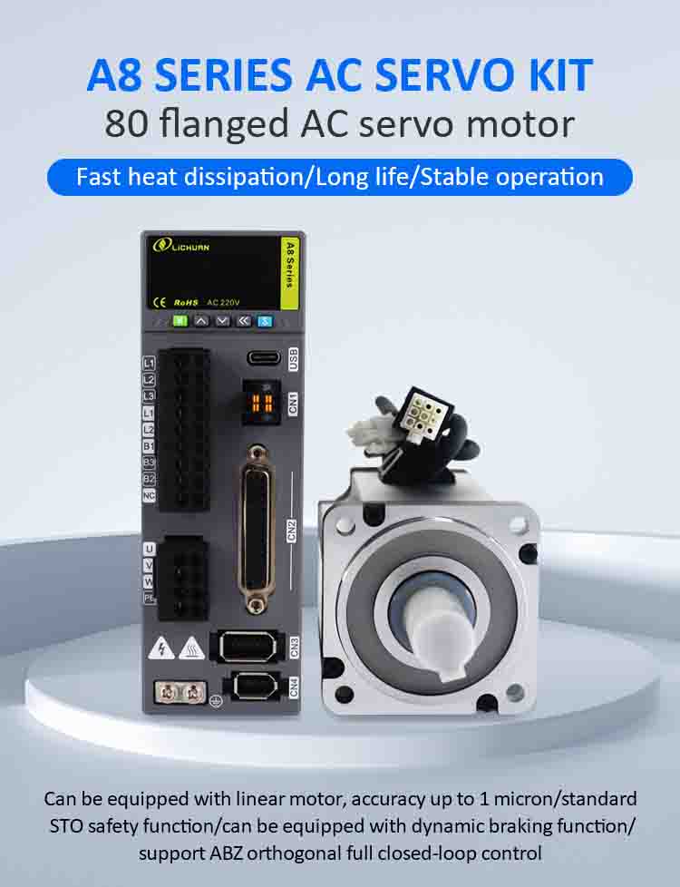 TheLichuan A8 жоғары дәлдіктегі STO ABZ айнымалы ток сервомотор драйверлерінің жинағыжоғары өнімді айнымалы ток сервомоторларын жетілдірілген A8 сериялы серво драйверлерімен біріктіреді. STO қос арналы қауіпсіздік қорғанысы және ABZ кодтаушы кері байланысы бар жүйе ерекше дәлдікпен орналасу мен жылдамдықты басқаруды қамтамасыз етеді.