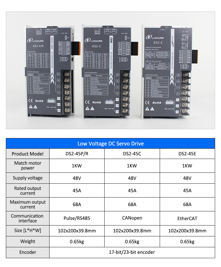 Pulse / RS485 / Canopen / Ethercat 40 Flong 100w төменгі кернеуі DC Servo Motor Drivers жинағы